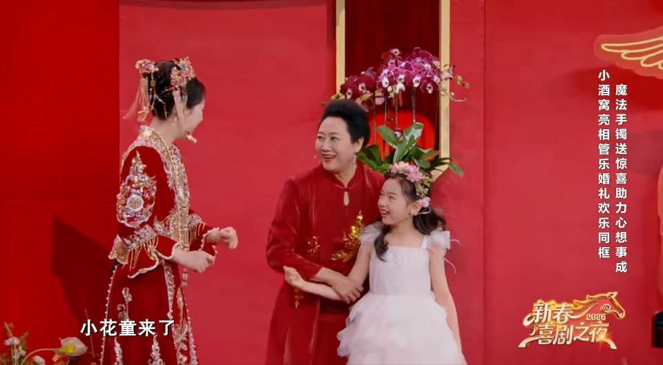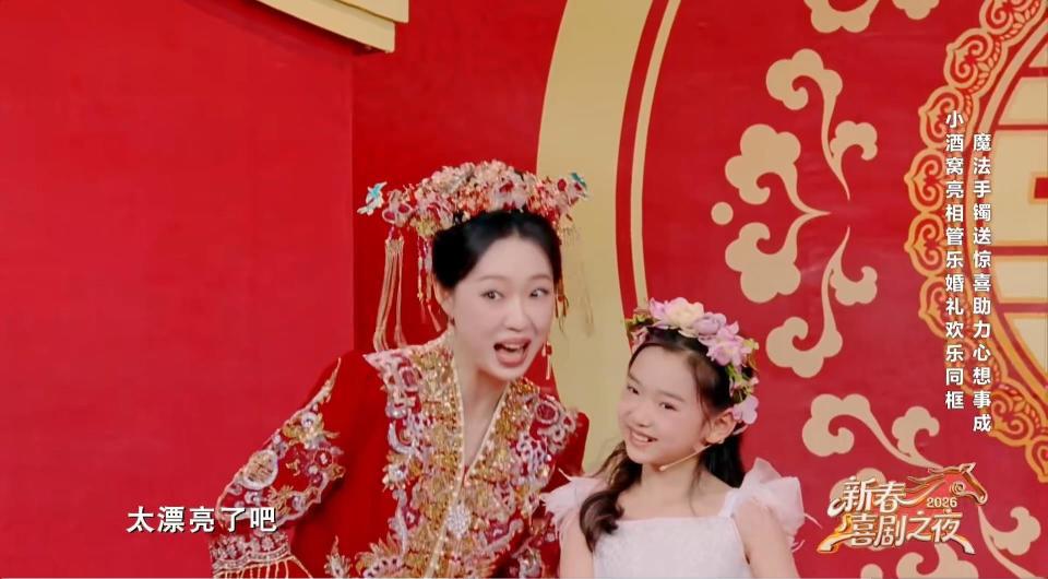 央视 2026 年《新春笑剧之夜》的一个婚典小品,无意捧红了一双“跨次元姐妹花”。演员管乐饰演新娘,而她的“小花童”恰是董璇的犬子小酒窝(高舒乔)。两东说念主同框的画面,径直让网友炸了锅:这一样度,说是亲姐妹都有东说念主信!