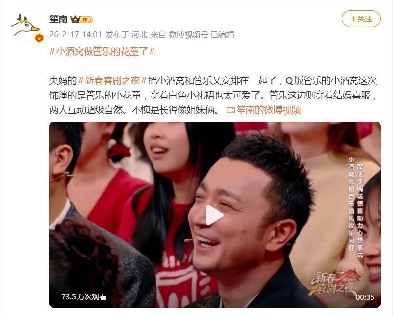 这可不是不雅众第一次“嗑”这对奇妙的组合。早在 2025 年,管乐的母亲就躬行下场认证,开云体育官方网站称小酒窝是“ Q 版管乐”。此次在春晚的舞台上同台共舞、同步扮演,几乎是把这份“官方认证”的一样度焊死在了不雅众心里。网友纷纷嘲谑:“这哪是选角,这是径直找到了‘少小版’我方!”“亲姐妹都没这样像,央妈也太会安排了!”