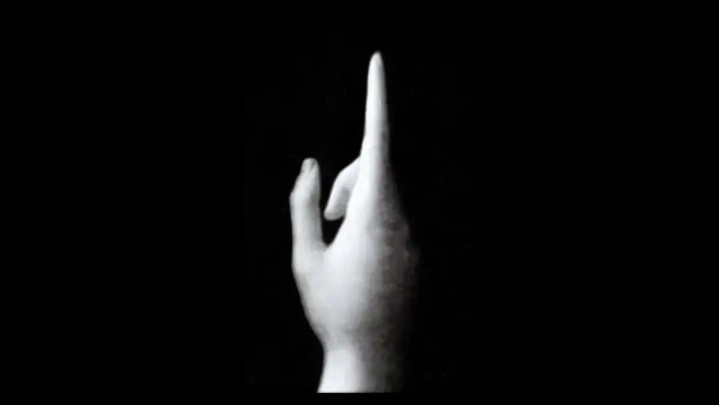 八十八岁的让-吕克·戈达尔在《影像之书》的来源,援用了这幅油画的其中一个部分,也便是那只指向天国的手。这只手从通盘构图中被分割出来,并被放大,直至填满通盘银幕。戈达尔汲干了它的颜色,在银幕上呈现出玄色布景中的浅灰色图案,那就像是复印机相通责任几次后的铁心。
