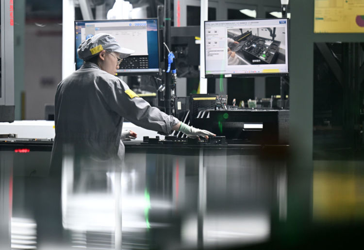 责任主说念主员在联思天津零碳智造工场条记本出产线进行功课。新华社记者赵子硕 摄