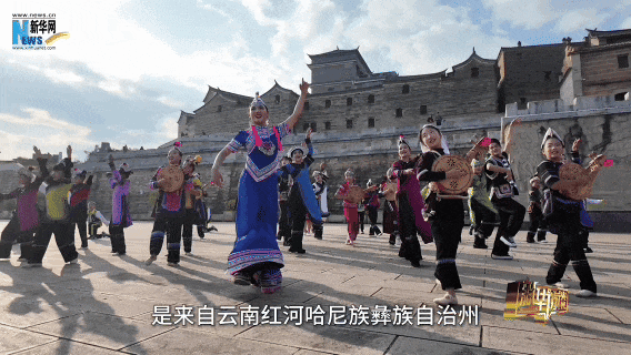 云南省红河哈尼族彝族自治州红河县,哈尼梯田边,“95”后哈尼族小姐杨钰尼和几个年青东谈主围成圆圈,边跳边唱。他们舞动手臂,变换舞步,未必交错对穿,未必翻身自转,间或跟着节拍鼓掌,欢腾而从容,极具民族风情与场地特点。