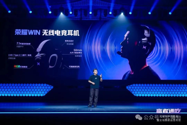 荣耀WIN无线电竞耳机,内置声卡,不错完毕7.1声说念音效。