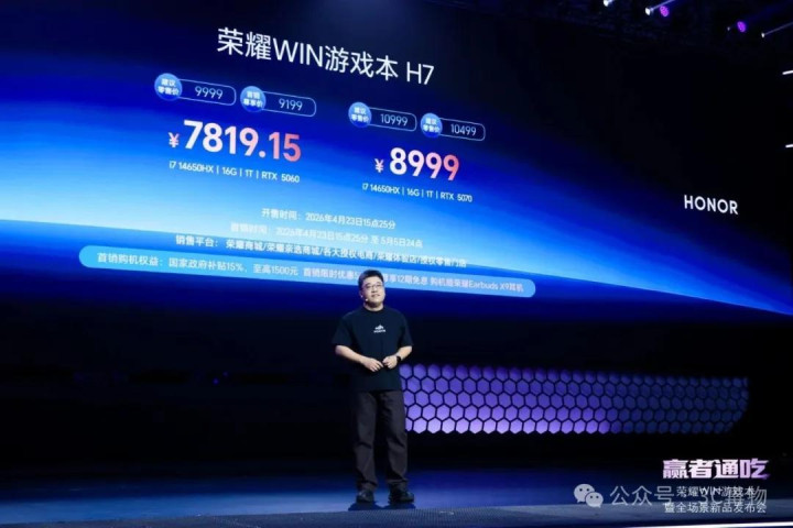 分袂是荣耀WIN游戏本H9、荣耀WIN游戏本H7。