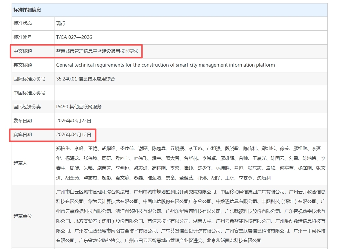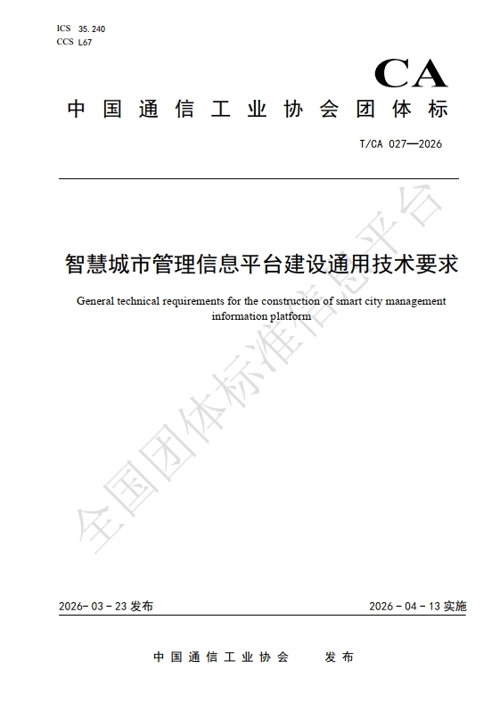 近日,由广州市白云区城市管制和抽象司法局(以下简称“白云区城管局”)牵头草拟的T/CA 027—2026《奢睿城市管制信息平台诞生通用工夫条目》团体轨范,由中国通讯工业协会在寰宇团体轨范信息平台公设备布,将自2026年4月13日起负责实施。据悉,这是中国通讯工业协会初次发布奢睿城市管制鸿沟的寰宇团体轨范。